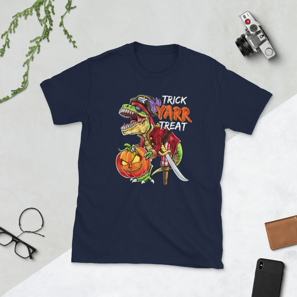 Pirate Dinosaur Halloween Pumpkin Jack-O-Lantern Short-Sleeve Unisex T-Shirt
