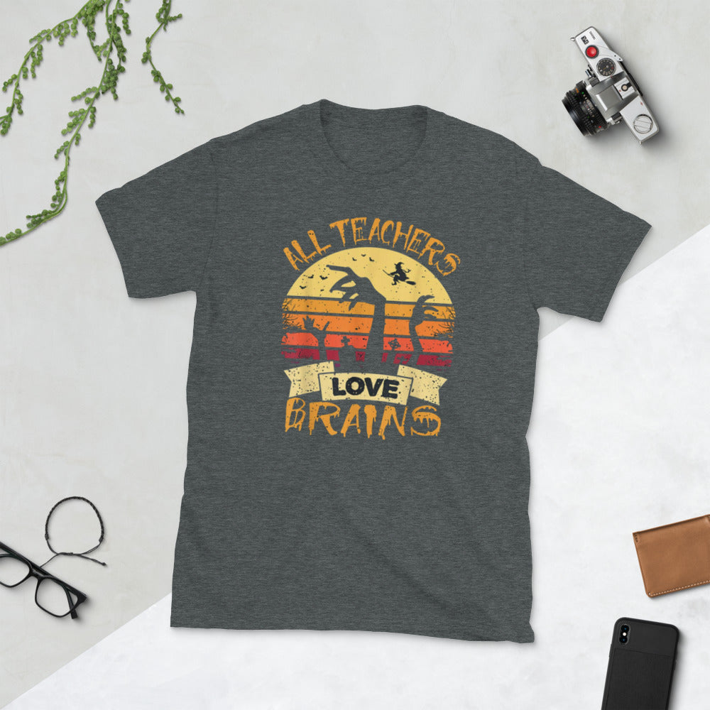 Teacher Shirt All Teachers Love Brains Halloween Short-Sleeve Unisex T-Shirt