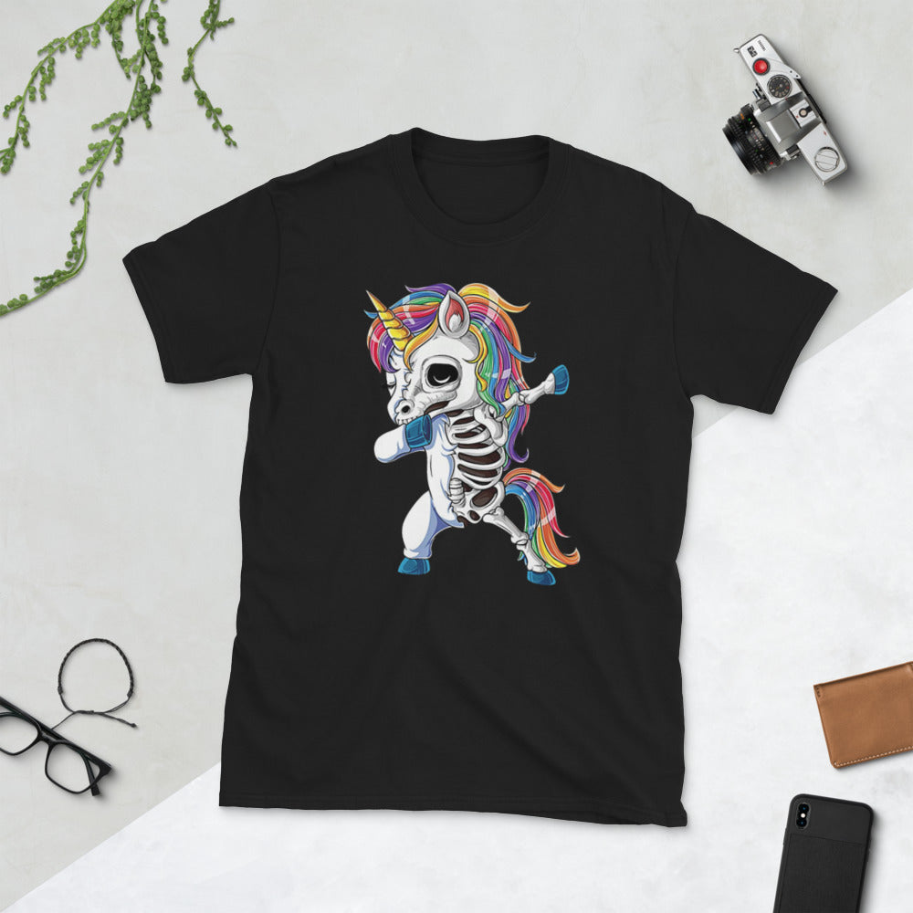 Dabbing Unicorn Skeleton Halloween Short-Sleeve Unisex T-Shirt