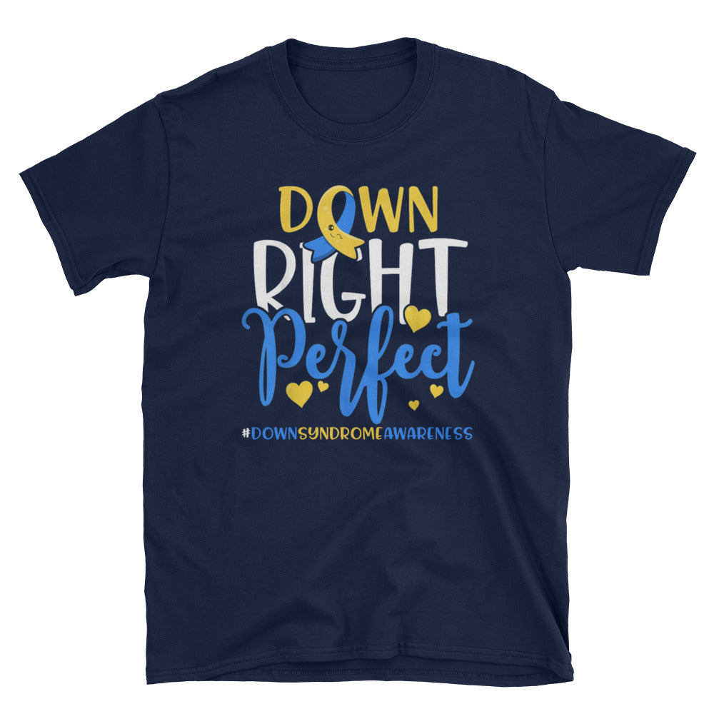 Down Right Perfect Short-Sleeve Unisex T-Shirt, Down Syndrome Awareness Day Shirt, World Autism Awareness Day 2019