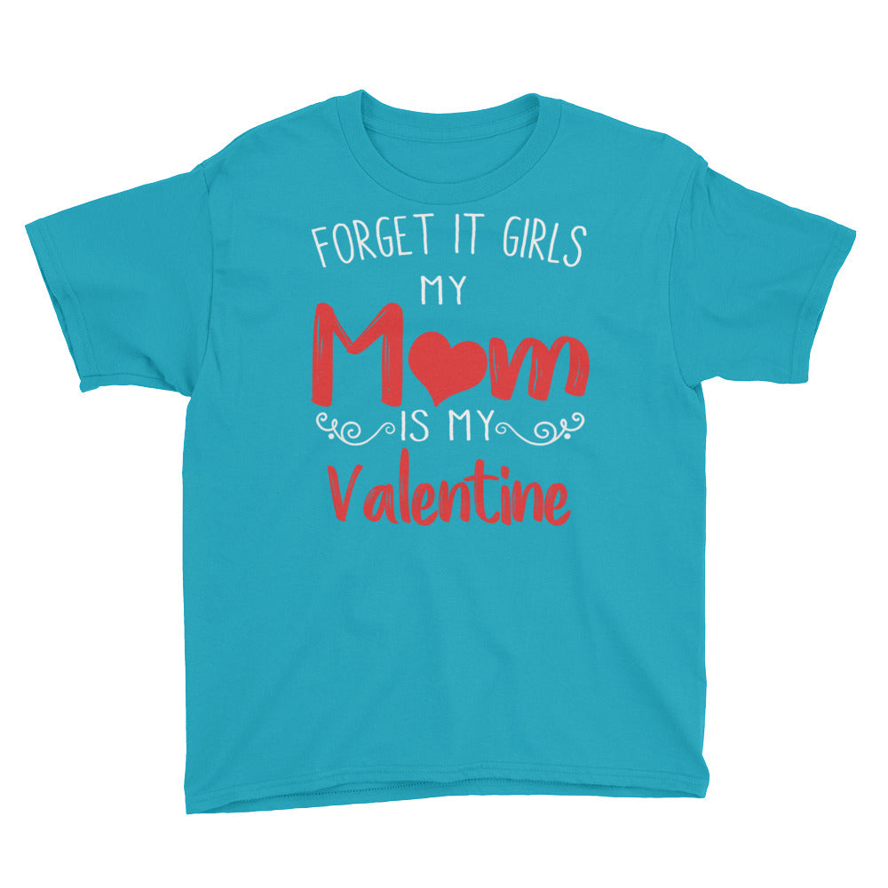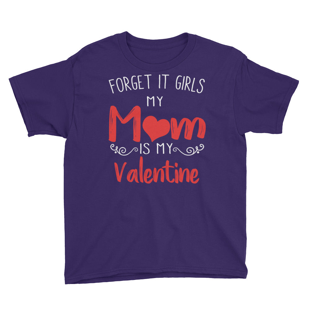 Forget It Girls My Mom Is My Valentine Youth Short Sleeve T-Shirt, Cute Valentine Gift For Kids From Mom