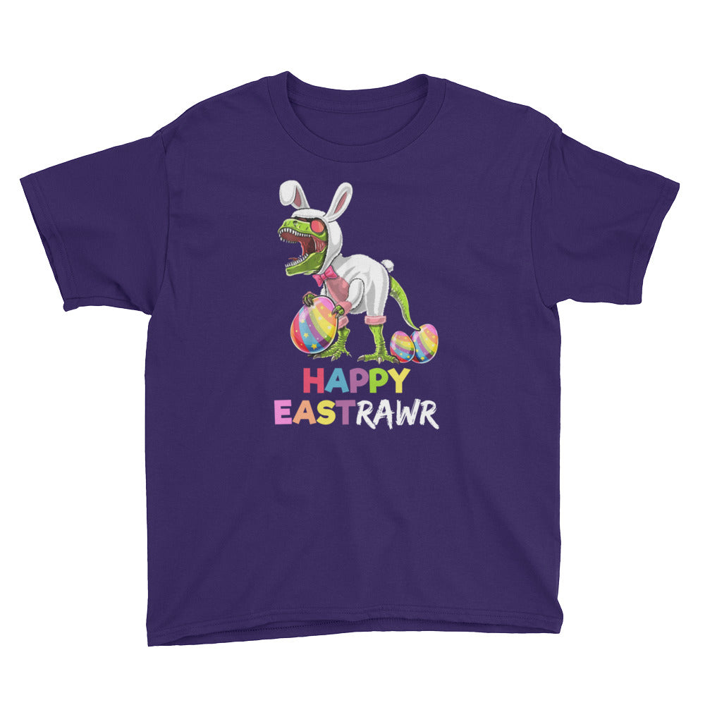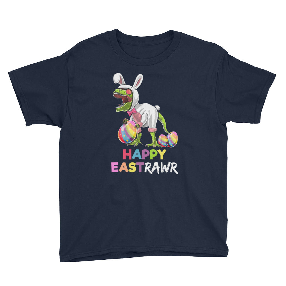 Funny Easter Day Happy EastRawr T Rex Dinosaur Easter Bunny Egg Shirt Kids Youth Short Sleeve T-Shirt