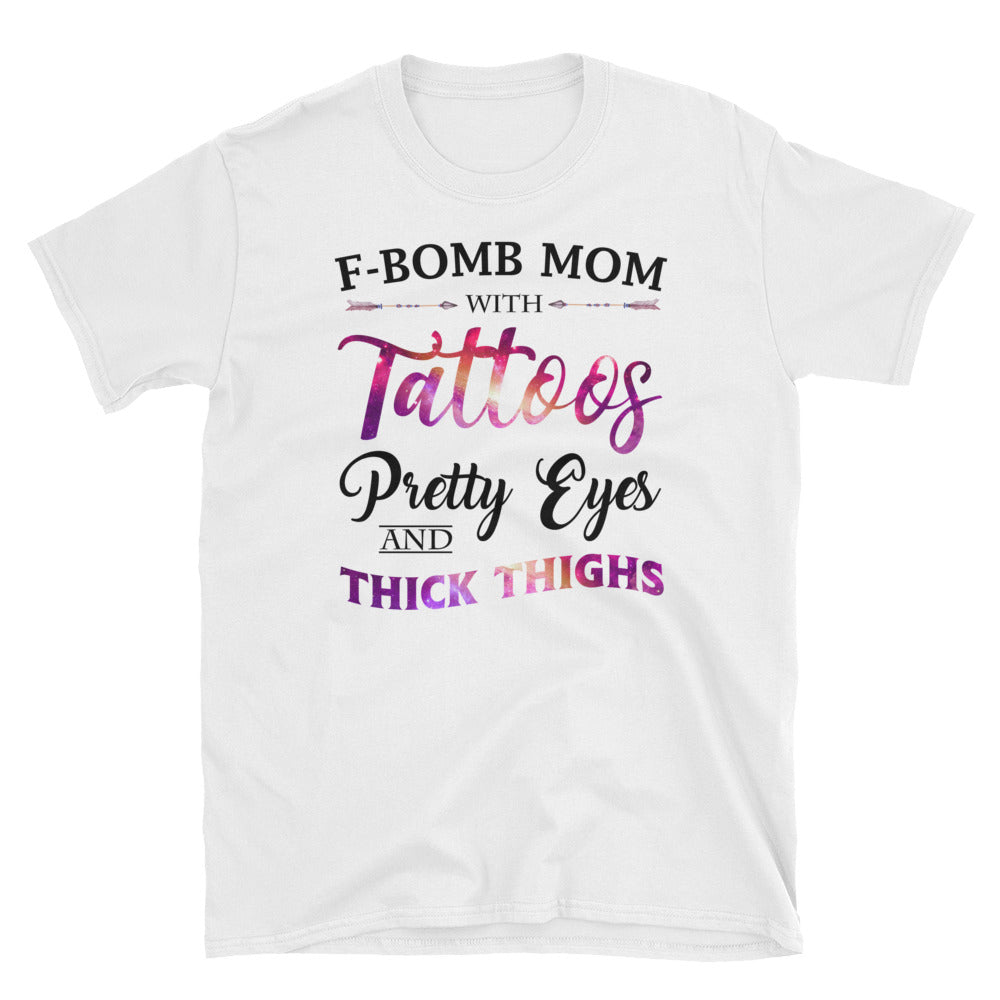 Funny F-Bomb Mom With Tattoos Pretty Eyes And Thick Thighs Short-Sleeve Unisex T-Shirt, Funny Mother's Day Shirt For Tattoos Mom