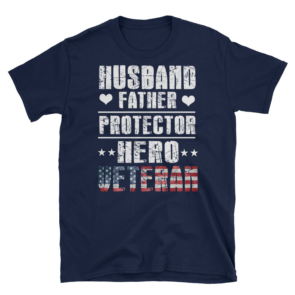 Husband Father Protector Hero Veteran Short-Sleeve Unisex T-Shirt, Father's Day Shirt For Veteran Dad