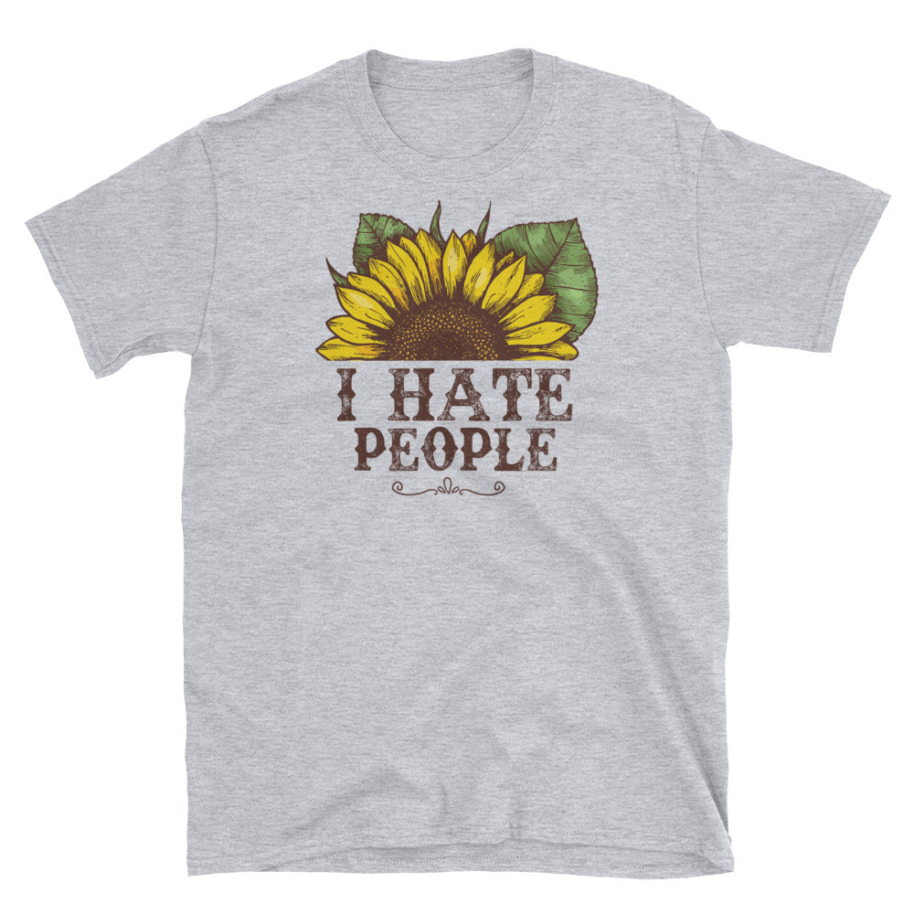 I Hate People Sunflower Short-Sleeve Unisex T-Shirt, Sunflowers Watercolor Shirt