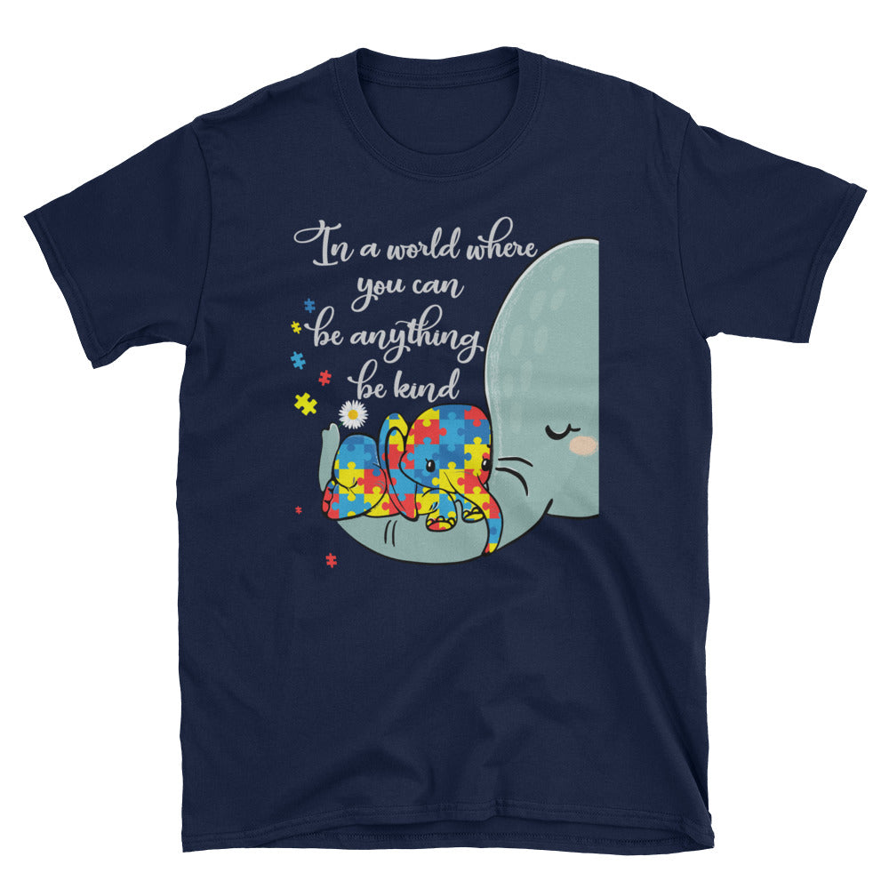 In A World Where You Can Be Anything Be Kind Short-Sleeve Unisex T-Shirt, Elephant Autism Mom Shirt