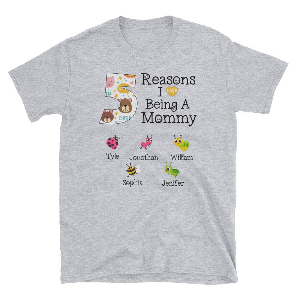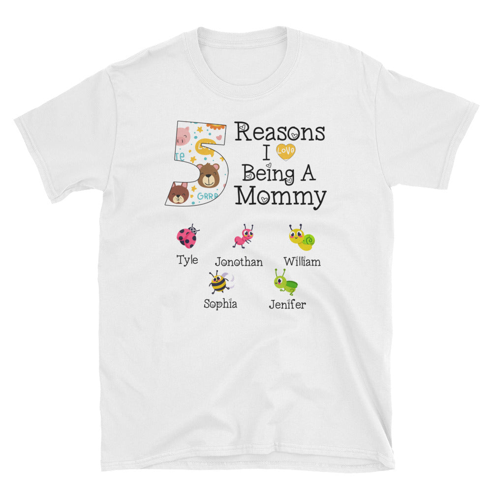 Personalized 5 Reason I Love Being A Mommy Custom Kids Name Unisex Softstyle T-Shirt, Cute Mother's Day Gift For Mommy, Grandma and Aunt