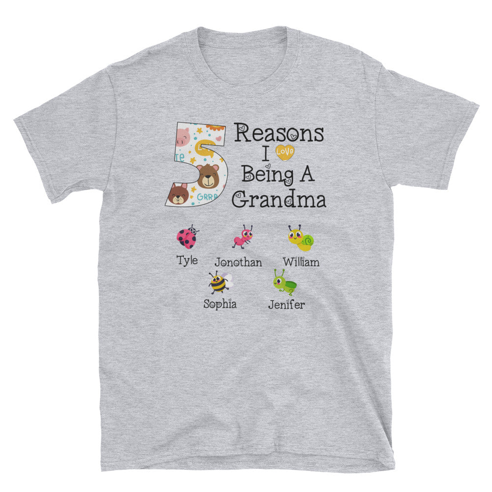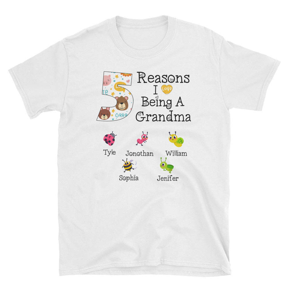 Personalized 5 Reasons I Love Being A Grandma Custom Kids Name Unisex Softstyle T-Shirt, Mother's Day Gift For Grandma, Mommy, Aunt
