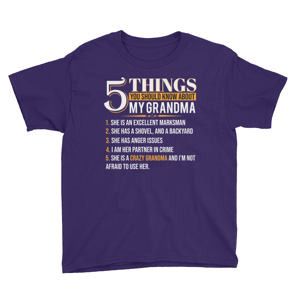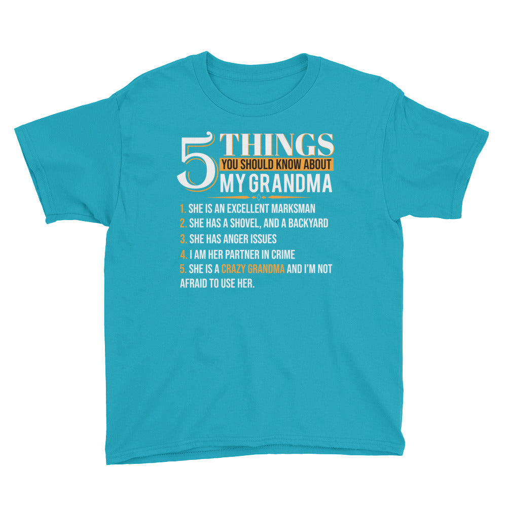 Personalized 5 Things You Should Know About My Grandma Youth Short Sleeve T-Shirt, Funny Grandma Gift For Kids