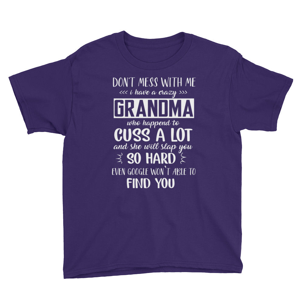 Personalized Don't Mess With Me My Crazy Grandma Will Slap You So Hard Youth Short Sleeve T-Shirt, Funny Youth T-shirt For Kids