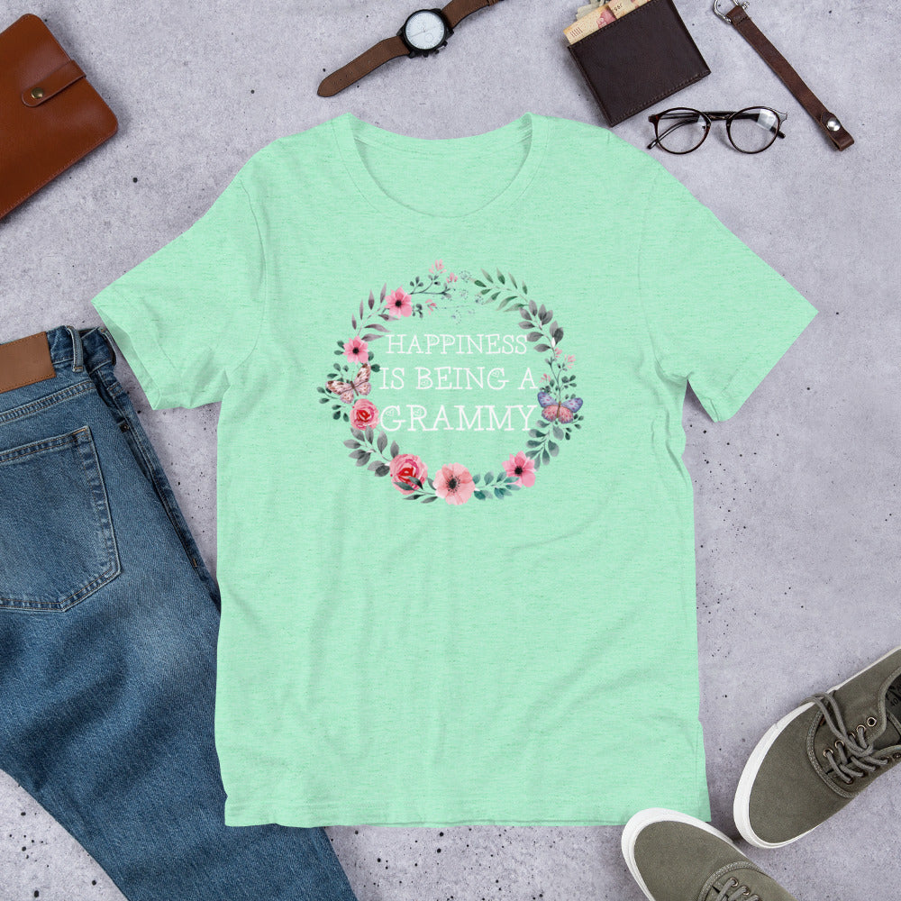 Personalized Happiness Is Being A Grammy Floral Short-Sleeve Unisex T-Shirt, Floral Mother's Day Gift For Grandma, Mommy, Aunt