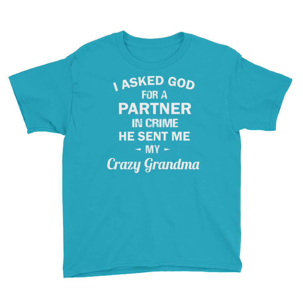 Personalized I Asked God For A Partner In Crime He Sent Me My Crazy Grandma Youth Short Sleeve T-Shirt