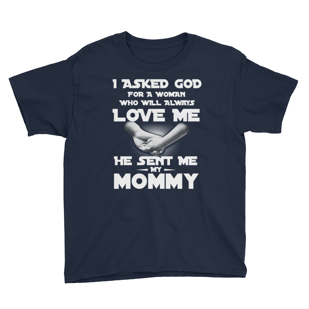 Personalized I Asked God For A Woman Who Will Alway Love Me He Sent Me My Mommy Youth Short Sleeve T-Shirt, Mother's Day Shirt For Kids, Mom