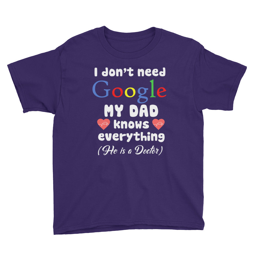 Personalized I Don't Need Google My Dad Know Everything He is A Doctor Youth Short Sleeve T-Shirt, Funny Father's Day Gift For Kids