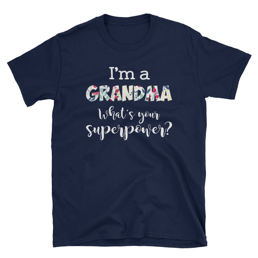 Personalized I'm A Grandma What's Your Superpower Short-Sleeve Unisex T-Shirt, Funny Floral Mother's Day Gift For Mom, Grandma, Aunt