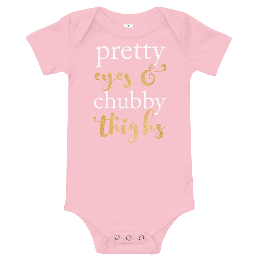 Pretty Eyes & Chubby Thighs Baby Onesies T-Shirt, Funny Bodysuit for Kids From 3 Month To 24 Month