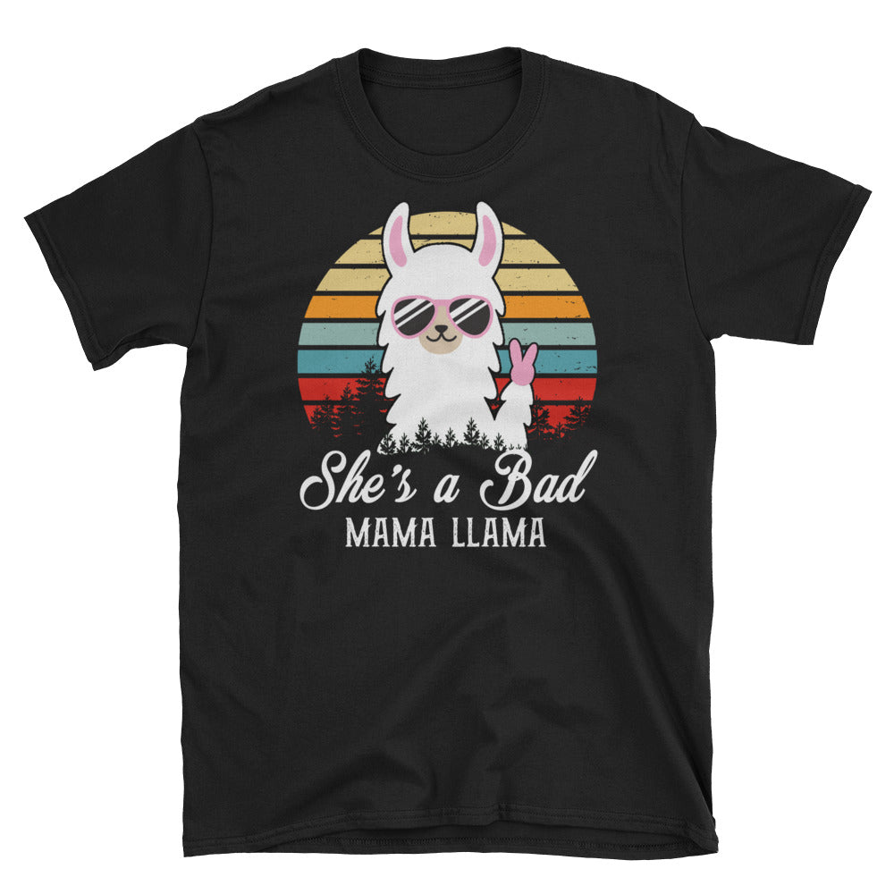 Retro She's A Bad Mama Llama Short-Sleeve Unisex T-Shirt, Cute Mama Llama Shirt, Funny Graphic Llama Tee