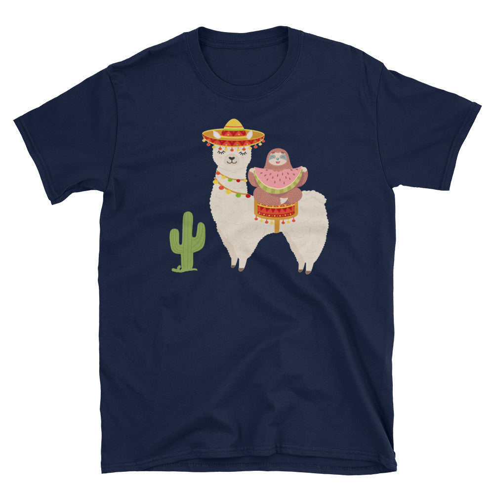 Sloth Ride A Llama Desert Short-Sleeve Unisex T-Shirt, Funny Graphic Tee, Llama Lover, Sloth Lover Shirt