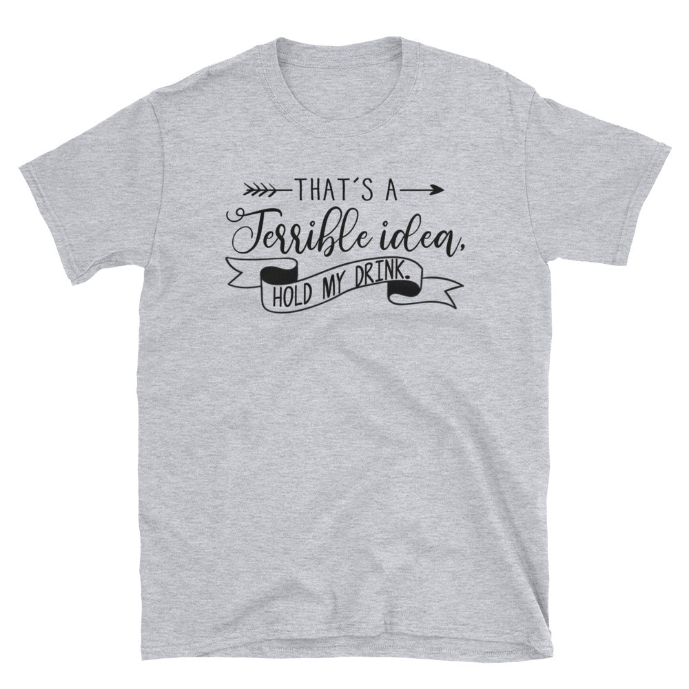 That's A Terrible Idea Hold My Drink Short-Sleeve Unisex T-Shirt, Funny Drinking Shirt